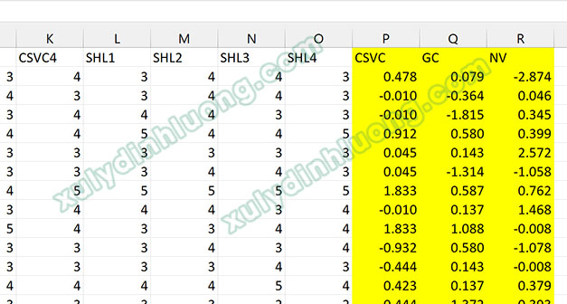 Chúng ta nên dán các biến trọng số LOC vào các cột cuối file dữ liệu .csv. Sau đó lưu lại file .csv và import lại vào mô hình đang xử lý trên SMARTPLS. Lúc này file dữ liệu của chúng ta đã cập nhật thêm các biến CSVC, GC, NV.