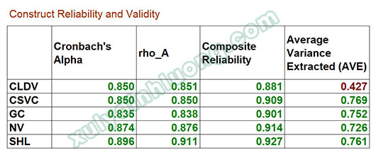 → AVE các LOC đều trên 0.5, các thang đo LOC đều đảm bảo giá trị hội tụ. Đối với AVE biến bậc hai CLDV, giá trị này SMARTPLS tính từ các biến quan sát được kéo thả vào CLDV chứ không phải các LOC. Như đã đề cập ở phần lý thuyết đầu bài viết, đánh giá mô hình đo lường của HOC nghĩa là chúng ta đánh giá mối quan hệ giữa HOC và các LOC chứ không phải HOC với các biến quan sát được kéo thả vào nó. Do vậy, chúng ta không sử dụng AVE biến CLDV ở đây. Khi trình bày vào bài nghiên cứu, bạn có thể xóa hàng kết quả của CLDV đi.